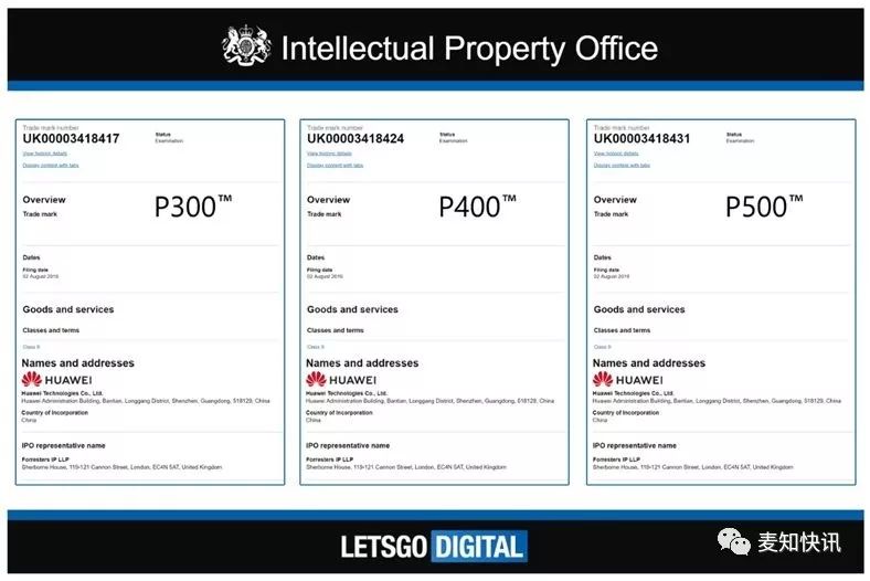而最近,华为的动作不小。8月3日,据外媒消息称,华为在欧洲申请了P300、P400、P500商标,基于华为的产品线设计,当时存在着几种不同的猜测:扩大产品线、改变命名规则、或者是保护性注册都是很有可能的。